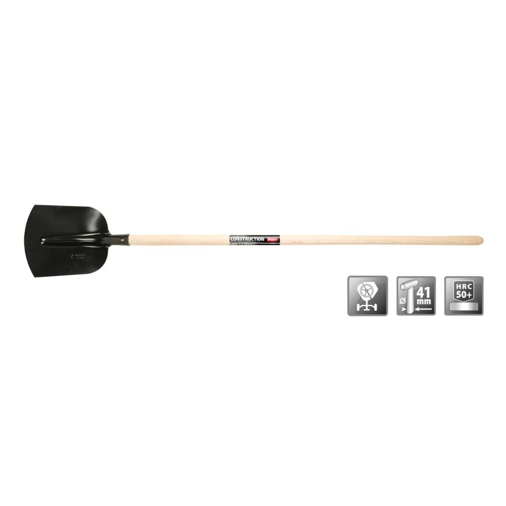 Deze zandschop met essen steel heeft een extra gehard blad in gelegeerd staal dat voorzien is van een aangeslepen snede. Hierdoor is de zandschop ideaal voor het ruimen van zand en puin, de aanmaak van mortel en een handige tool bij grondwerken.