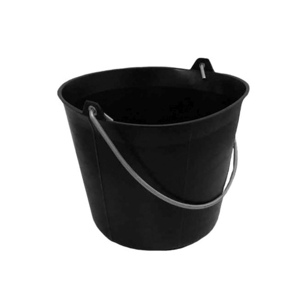 Zwarte rubberen bouwemmer van 11 liter voor gebruik bij verbouwingen, tuinieren en grondwerken. Vloeistoffen of vast materiaal, deze bouwemmer met robuuste metalen beugel is multifunctioneel en daarmee geschikt voor iedere klus.