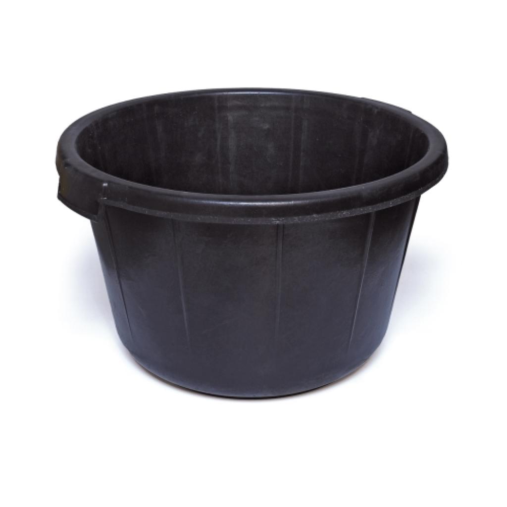 Zwarte rubberen mortelkuip van maar liefst 85 liter voor gebruik bij verbouwingen, tuinieren en grondwerken. Deze grote ronde mortelkuip beschikt over verstevigde handvatten en een versterkte zijkant.