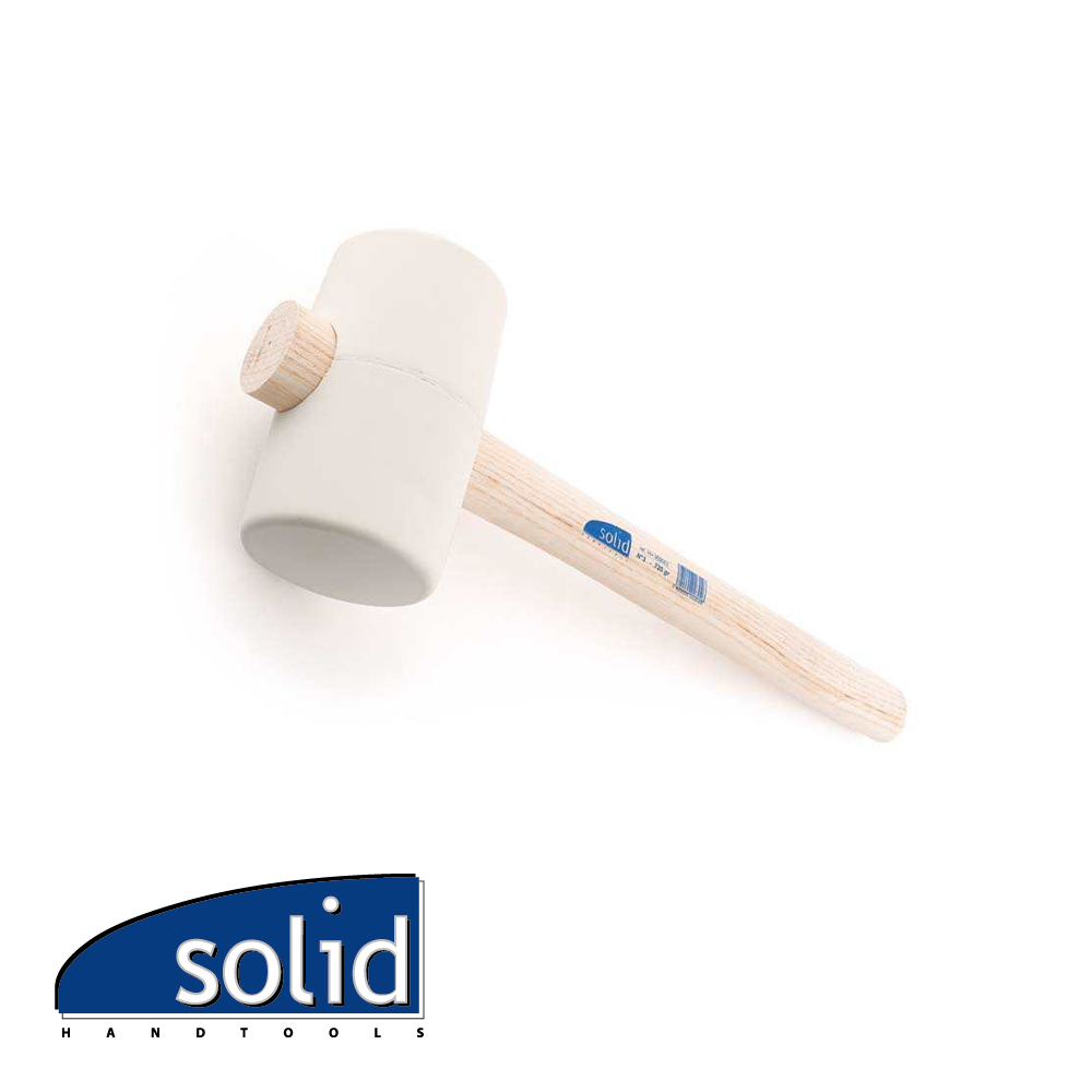 Witte rubber hamer voor de nauwkeurige plaatsing van tegels en natuursteen. Het rubberen vlak voorkomt terugslag en verhindert het nalaten van markeringen op de tegels terwijl de houten handgreep zorgt voor comfortabele grip.