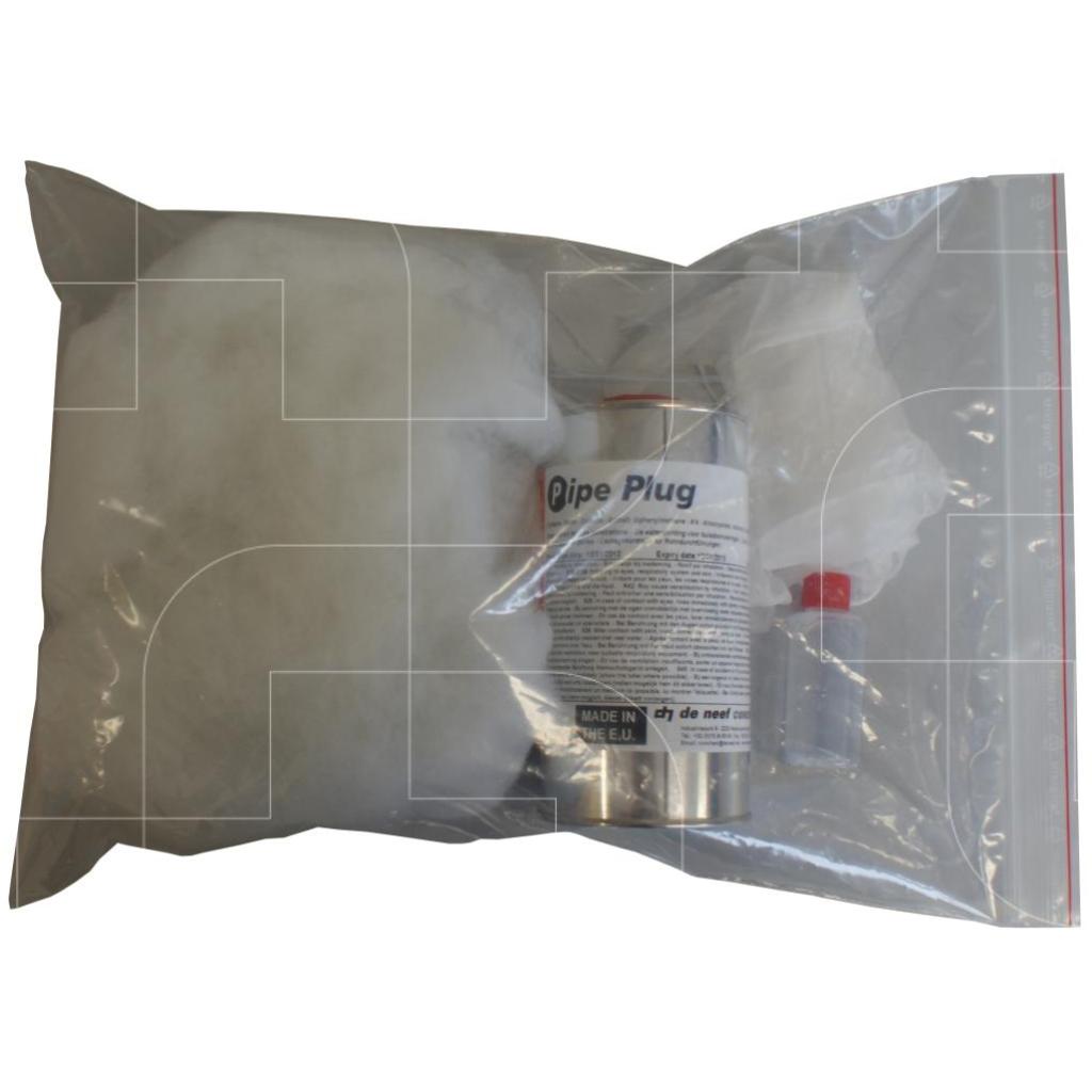 De De Neef Pipe Plug kit is een uniek product voor het afdichten van buis- of kabeldoorvoeren. De kit bevat een polyesterprop, uithardend hars en versneller, handschoenen. De kit wordt geleverd in de mengzak, waar u de afdichtende prop in activeert.