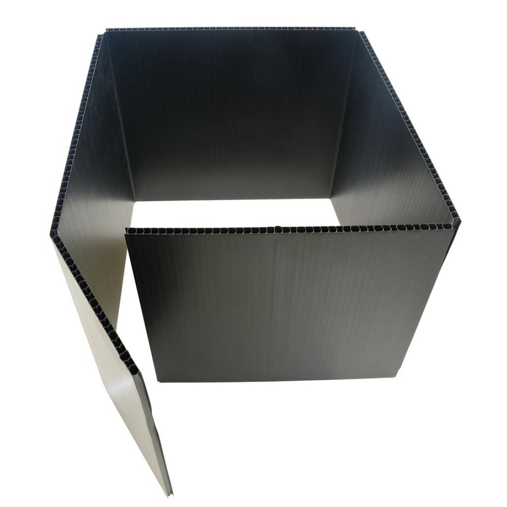 Kunststof kanaalplaten, te gebruiken als verloren bekisting. Makkelijk bij het maken van gewapende funderingsbalken, ... indien de grond opnieuw aangevuld dient te worden.