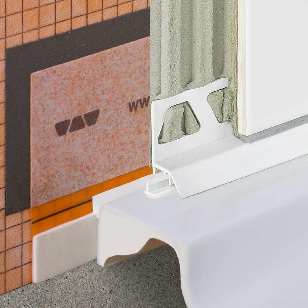 Het profiel doet geen dienst als afdichting, maar vormt door zijn tweedelige groefmesverbinding – zelfs bij een hoogteverandering – toch een barrière tegen water. De nodige afdichtingsmaatregelingen moeten worden genomen voordat het profiel wordt ingebouwd.