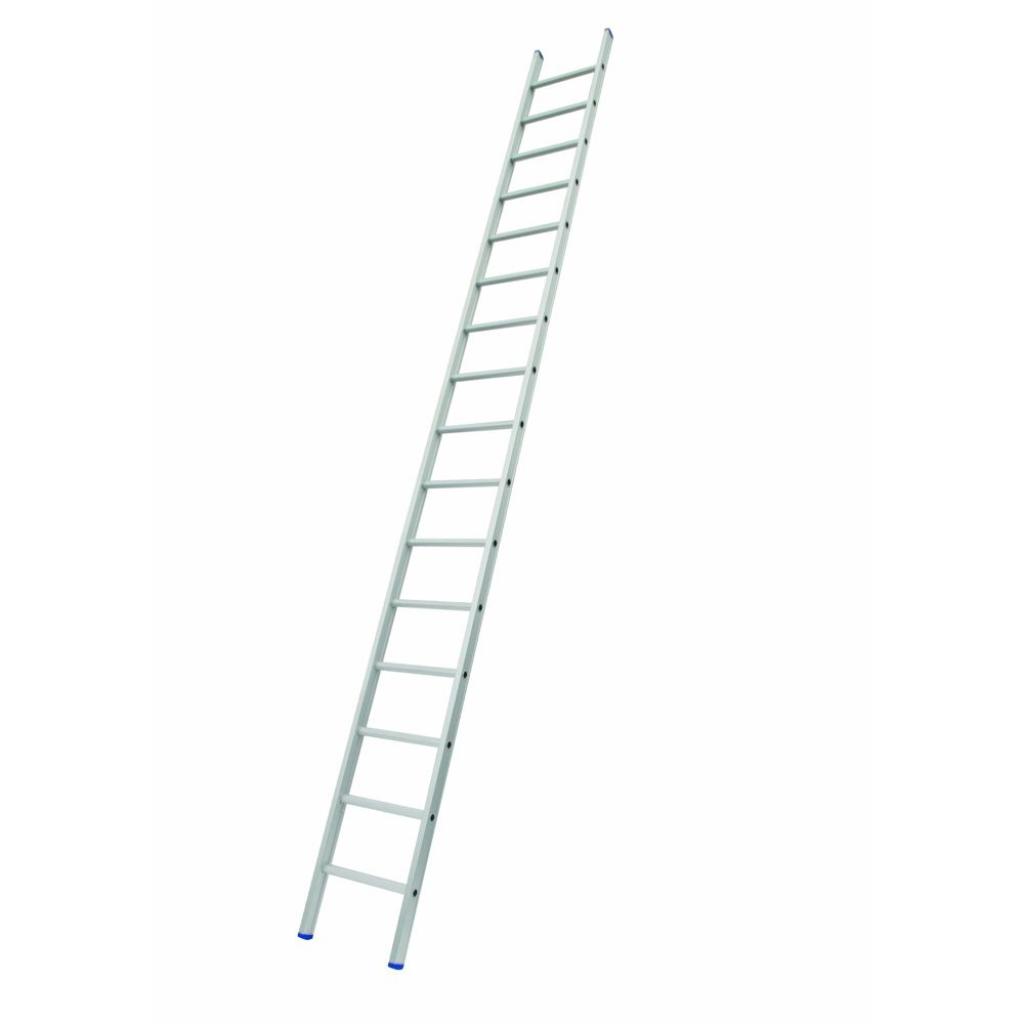 Professionele enkele ladder, gecoate dikwandige aluminium, brede sporten, zeer stabiel en weinig vering tijdens beklimmen.