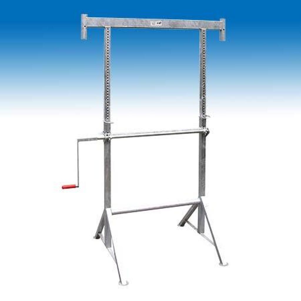 Verzinkte opdraaibare bouwschraag. Zeer robuuste uitvoering. Enorme tijdswinst omdat je de werkvloer kan laten liggen en de kuipen kan laten staan bij het traploos verhogen van de schragen. Voorzien van 2 hulzen om leuninghouders in te steken OF het in optie verkrijgbare verhoogstuk van 1m.